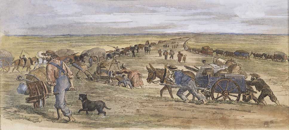 Your 5th great grandmother, Lucy Upcott Rundell came to Australia in July 1853 after being widowed twice. The first husband was a letter carrier, William Blewett Netherton who died in Chelsea, London in 1843, most probably from cholera. She moved back to the Plymouth/Devonport region of Devon at the mouth of the Tamar River, where she had grown up (her father was a naval ship builder) and married James Marshall, a gunner with the Royal Navy. He died in December 1852 and six months later Lucy made the voyage to Victoria and onto the Goldfields of Ballarat and Bendigo on the “Euphemus” with her four young daughters and one son, aged from 3 to 13. The whole world knew about huge amounts of gold being found in Victoria and people were sailing from England and Europe aboard any ship possible to get in on the action. Lucy’s probable intention was to have a better life and to find suitable husbands for her daughters, although three of her brothers and one sister had migrated to Victoria over a five-year span between 1849 and 1854.