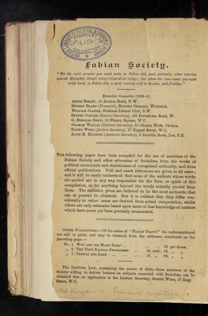 Alice Hoatson lived in the centre of an extraordinary love triangle which developed in 1886 when Alice came to stay with one of her friends, Edith Nesbit, who had just suffered a miscarriage. Nesbit, author, poet and one of the founders of the Fabian Society (with her husband, Hubert Bland) is well known for her book “The Railway Children”. Alice Hoatson was also involved in the founding of the Fabian Society and is listed as part of the Executive Committee in 1889. Edith Nesbit and Alice Hoatson had met when Nesbit approached a Fleet Street magazine about accepting one her stories. Alice was working at the magazine as a journalist and agreed to publish the story. Edith was beautiful and extrovert, Alice was introverted and mouse-like, but they became best friends.