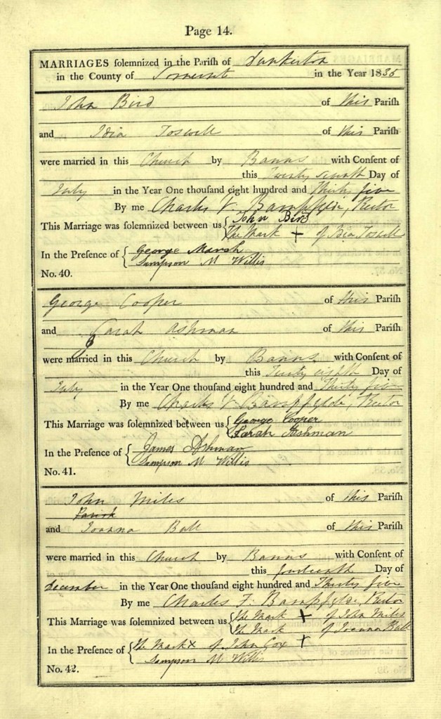 In 1835, when Sarah would have been eleven years old, both her brother, Charles and her father John were married. On the 21st of June 1835 Charles married Mary Weston at St Peter’s Englishcombe. They both may have been working in Englishcombe, a large farm and village that was close to the city of Bath. They had a son, William, born in Englishcombe in 1836 and a daughter, Martha, also born in Englishcombe in 1839 who only lived for a few months.