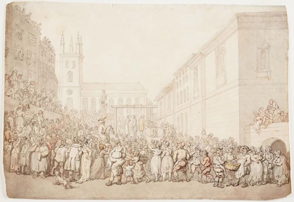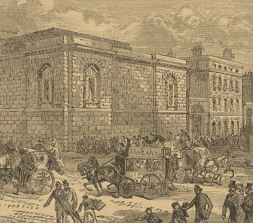 In the late 18th century, executions by hanging were moved to Newgate Prison from the Tyburn gallows. These displays of public sport took place on the public street in front of the prison, drawing crowds until 1868, when they were moved into the prison.
