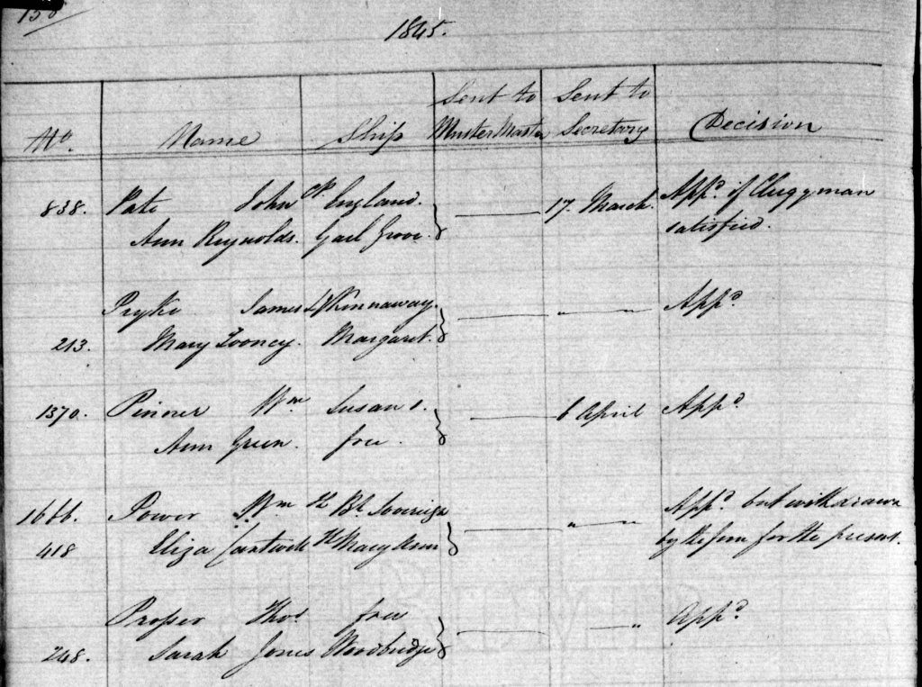 Thomas Allison, 22 years old from Spital Fields in London was sentenced to fifteen years transportation and arrived at Van Diemen’s Land aboard the Anson. I mentioned this ship earlier: it was stripped and the rigging and other equipment was sold for £12,307. Anson would never again set sail. She was refitted to become a ‘prison hulk’ of sorts, towed to the Prince of Wales Bay on the river Derwent near Hobart and used to accommodate and train female convicts from 1844 to 1849 as a Probation Station.