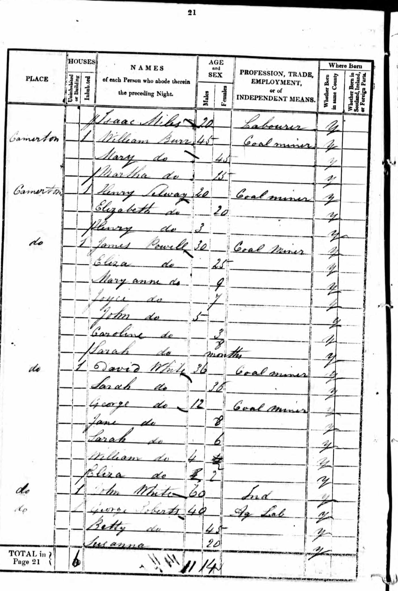 Isaac Miles (1819-1875) is recorded as a 20-year-old labourer living in Camerton with Thomas Hodges, a 40-year-old labourer and his wife, Sarah, also 40, and their five children, Ann, 15; Anna, 14; Thomas, 10; William, 9; and James 3.