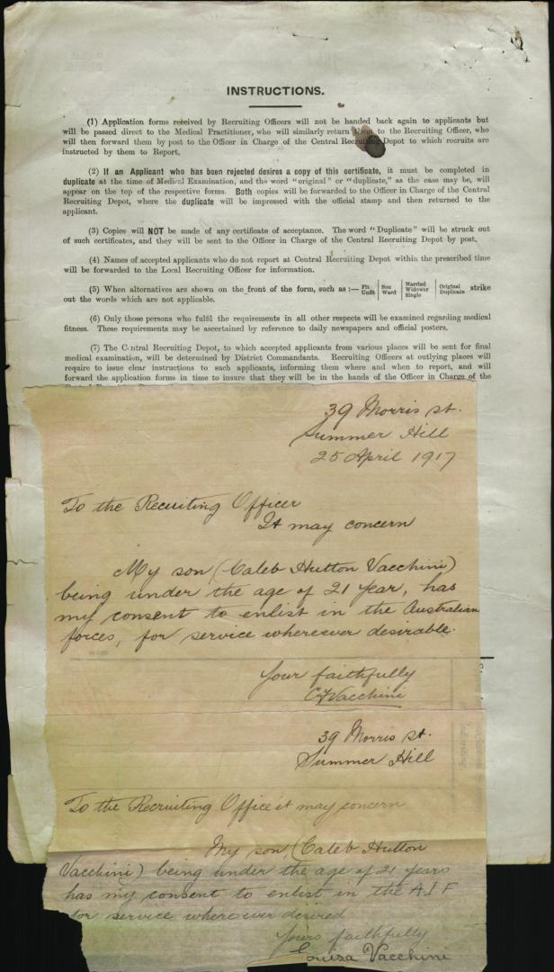 This address was widely reported in Australia as well as in Britain and he could have been describing my great grandfather, Caleb Francis Vacchini.