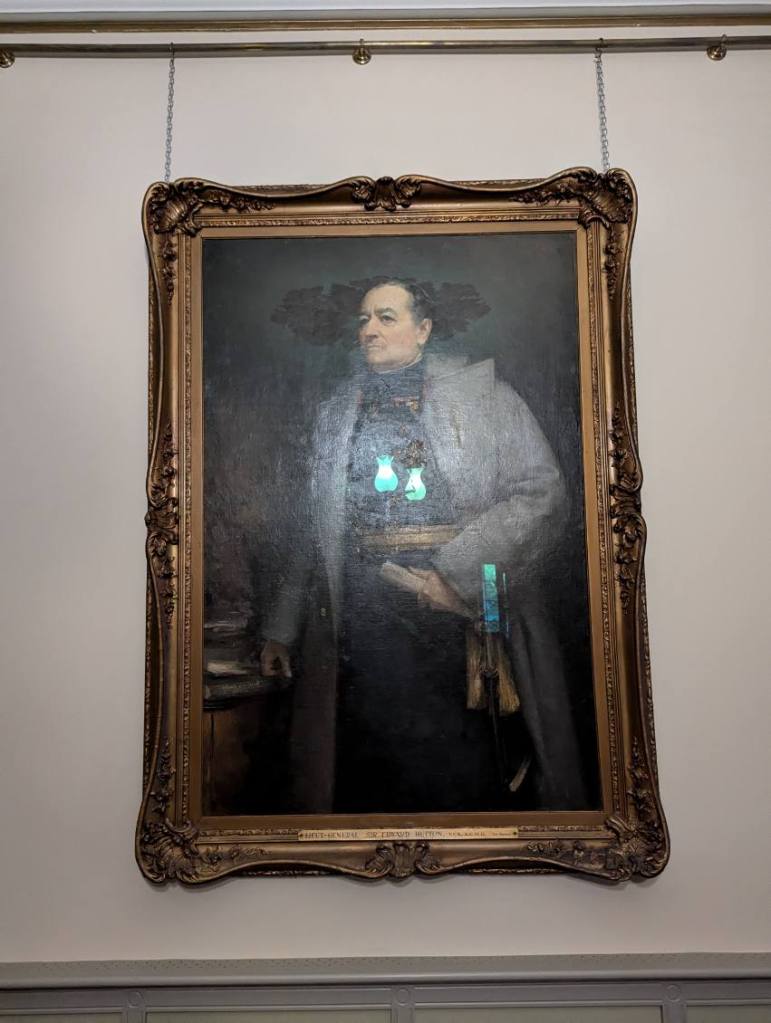 On the last day of our little trip to Canberra we were invited by the Major to visit the Officers’ Mess in Duntroon for a few libations before our last dinner in the nation’s capital. The Major gave a great tour of the complex, pointing out various buildings and their utilisation during a recruits training. As we chatted in the Mess, I noticed a portrait which featured on the wall behind our chairs.