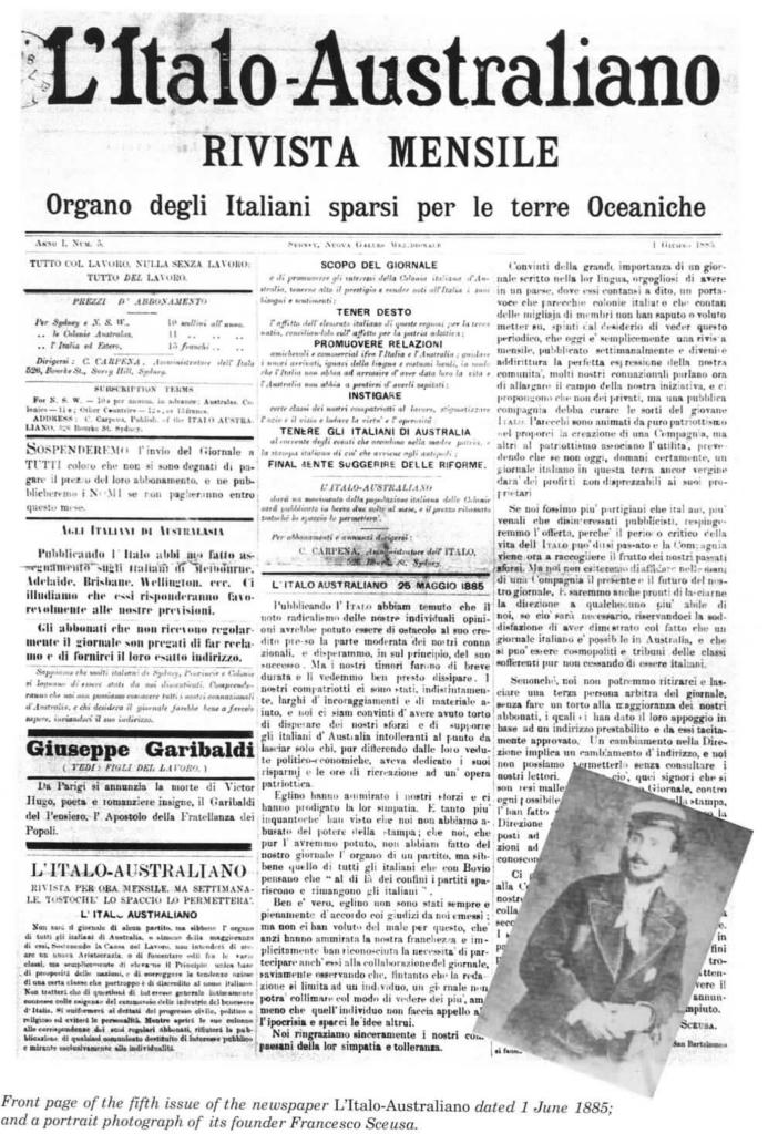 Knowing his strategic aims, it comes as no surprise that Sceusa was the co-founder and editor of the first Italian newspaper to be published in Australia – L’Italo-Australiano. On January 12, 1885, the first issue appeared in Sydney.