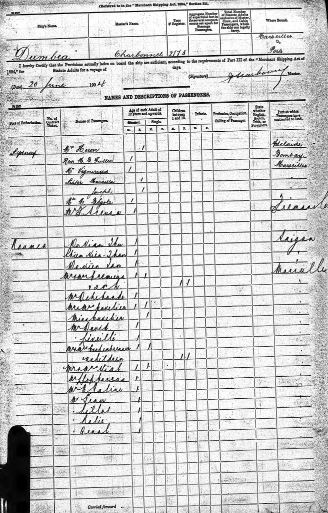 I can only find one trip west that Francesco could have made as part of his new job. He travelled by the ship “Dumbea“ from Sydney to Fremantle on the 20th of June 1904.